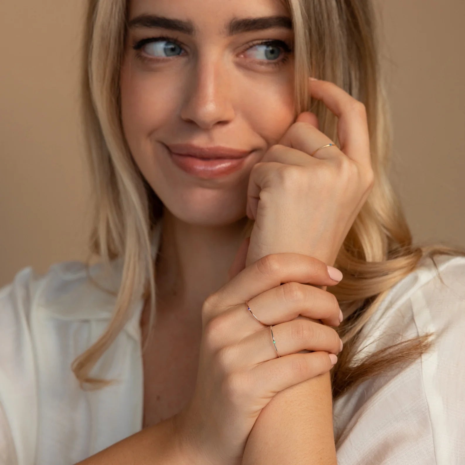 Elevate your holiday gifting with our Thin Mini Birthstone Ring. Featuring an extra-thin band, this minimalist piece is perfect for stacking or spacing along your hand. A stylish and elegant Christmas gift for anyone who loves versatile jewelry.